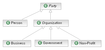 the type hierarchy used to represent the concept "Party"; this is a very common form and is easily described using